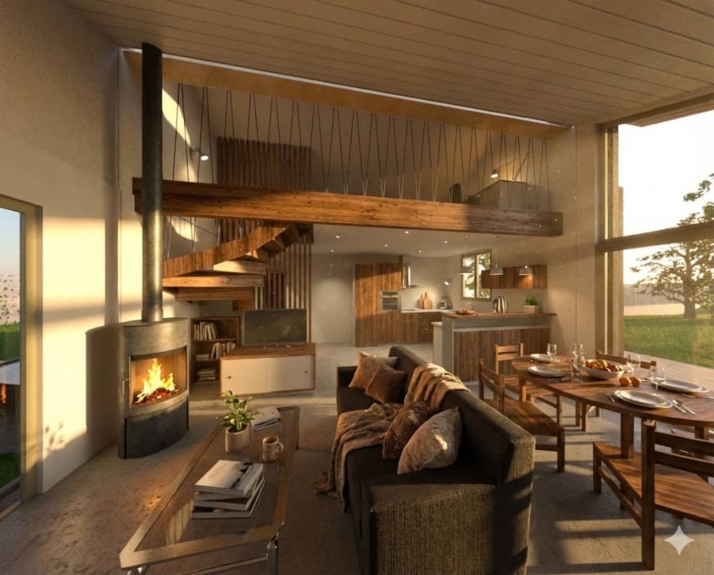 Systèmes énergétiquesPoêle à bois, Panneaux photovoltaïques, Toilettes sèches et phytoépuration, Puits