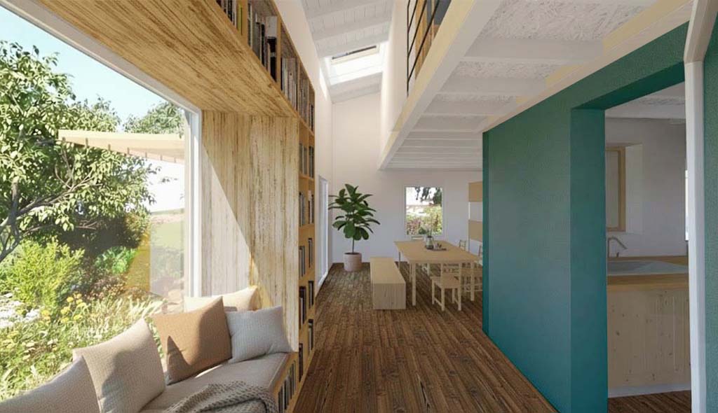 Cette extension est née sous l’impulsion de 2 contraintes majeures : Le manque de surface habitable et l’envie d’espace et de luminosité. L’habitation actuelle est un pavillon des années 70, traversant est-ouest, un plan divisé en 4 zones et une hauteur sous plafond relativement faible. Cela créait un environnement très statique et intériorisé. L’objectif était donc, en créant une salle à manger, un solarium et une chambre supplémentaire, de redonner une nouvelle spatialité et une dynamique du lieu. Les jeux de coursives, de mezzanine et de différence de niveaux amènent à croiser les vues et apprécier l’espace de manière transversale.